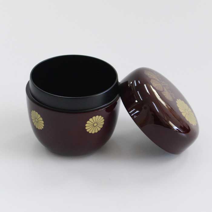茶道具 棗 木乾 中棗 黒 真塗 菊桐