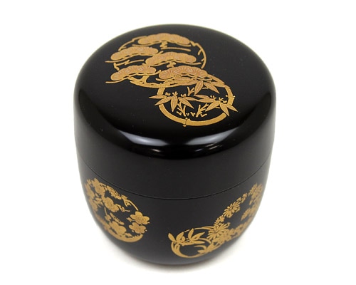 茶道具 棗 彩色 中棗(内蓋付) 黒 桜画