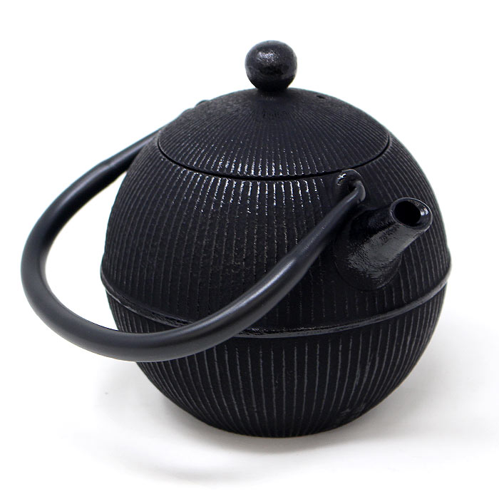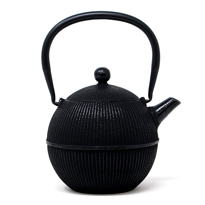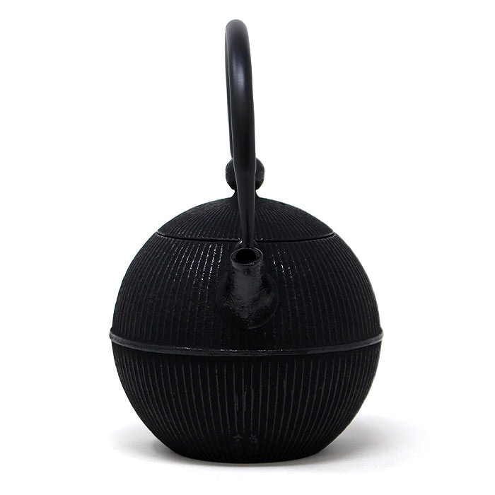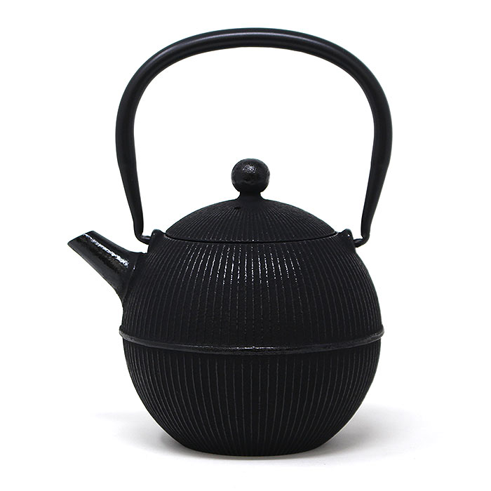 奥州・岩手県「南部鉄器」の鉄瓶です。南部鉄瓶はその均一した厚みにより優れた熱伝導力と保温力をもちます。 鉄瓶で沸かしたお湯には鉄分が溶出し、まろやかな味わいになります。またその美しい見た目から道具としてだけではなく、インテリアとしても活躍してくれます。 ◎まん丸なフォルムと取っ手が可愛い鉄瓶です。0.8Lと小ぶりなので収納にも困らず日常使いにも便利です。(※IH非対応・ツルは倒れます。)