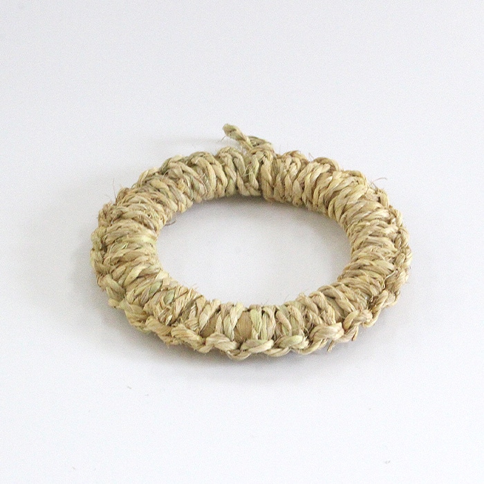 新潟県佐渡島の稲わら細工による鍋敷きです。産地では「釜敷き(かまじき)」と呼ばれています。 近年では稲刈りの機械化により材料が枯渇している点や、作り手の方の高齢化など貴重なものになっています。 乾燥させて撚りをかけた稲わらを芯にしっかりと巻き付けており、佐渡島で作られる鍋敷きは他の産地のものよりぎゅっときつく編まれています。 フック付なので使わない時はキッチンにかけておけます。 人の手によるぬくもりある暮らしの道具、ぜひ暮らしの中でご愛用ください。