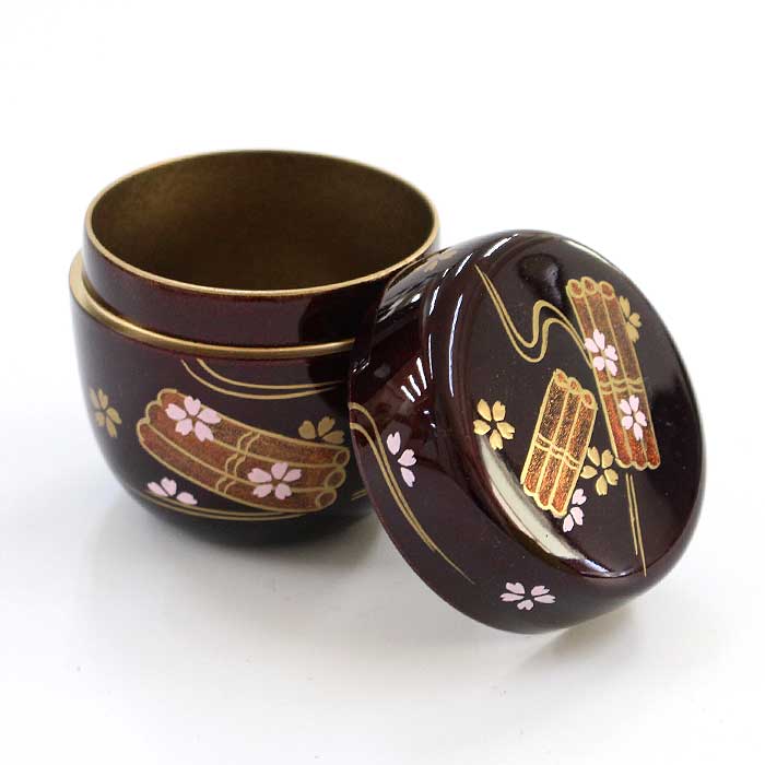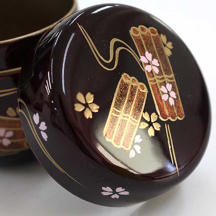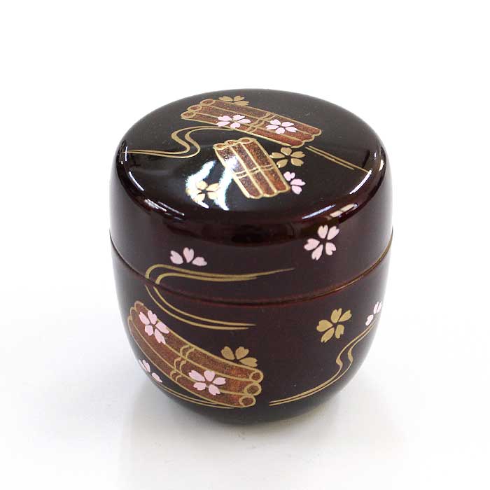 茶道具 棗 彩色 中棗(内蓋付) 黒 桜画