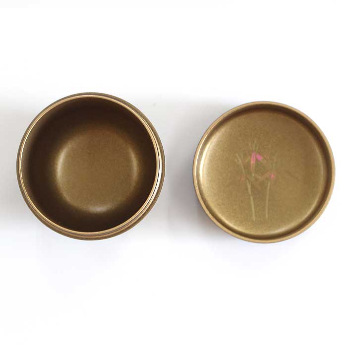 樹脂製 内梨子地の手描き溜塗中棗です。 練習用・お稽古用として人気があります。 内梨子地が品よく季節感を演出するのにおすすめです。