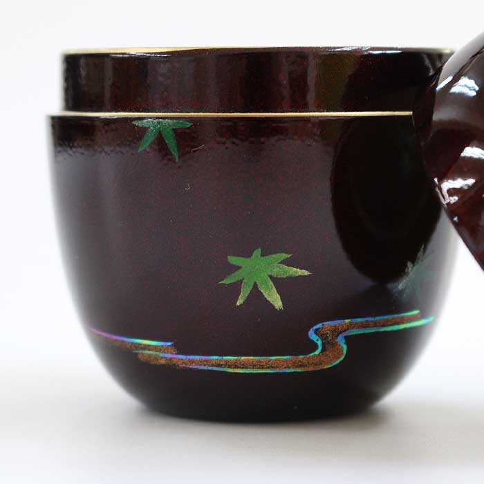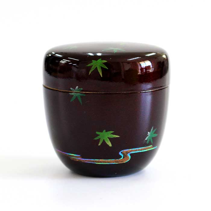 樹脂製 内梨子地の手描き溜塗中棗です。 練習用・お稽古用として人気があります。 内梨子地が品よく季節感を演出するのにおすすめです。