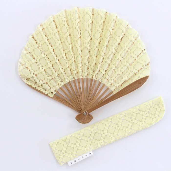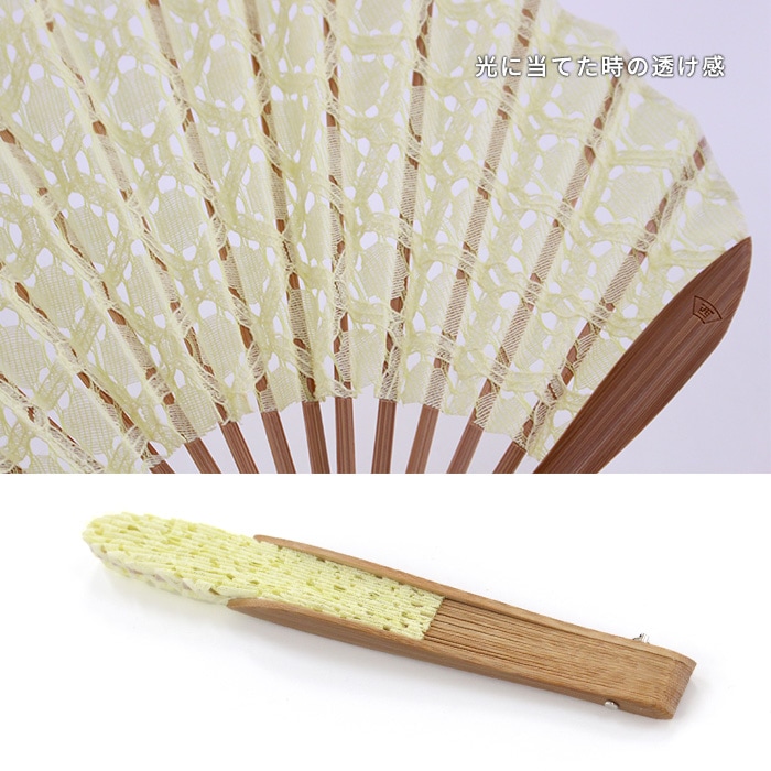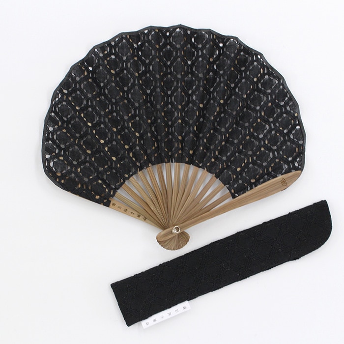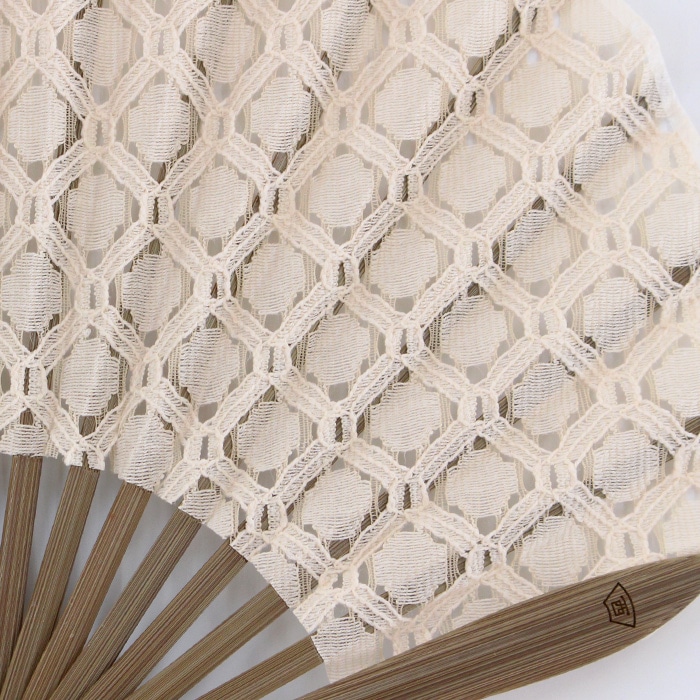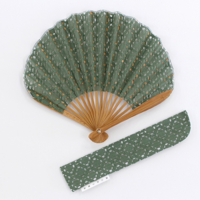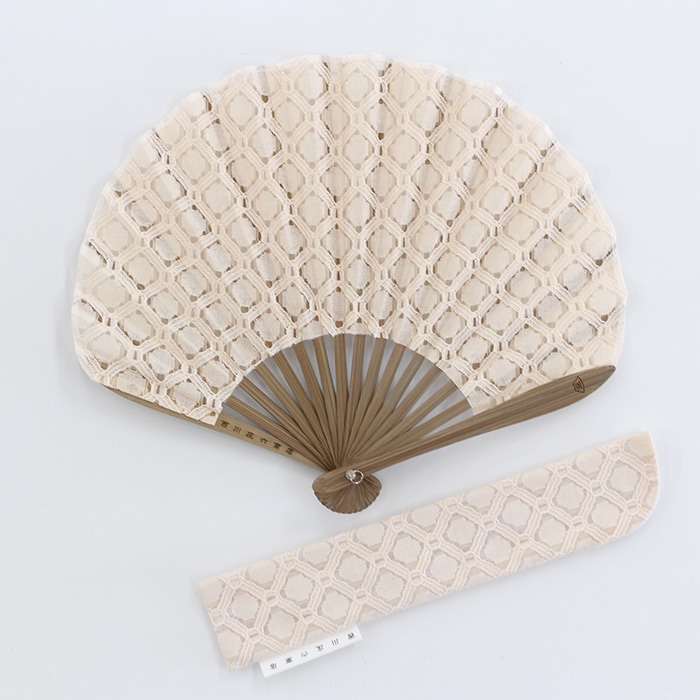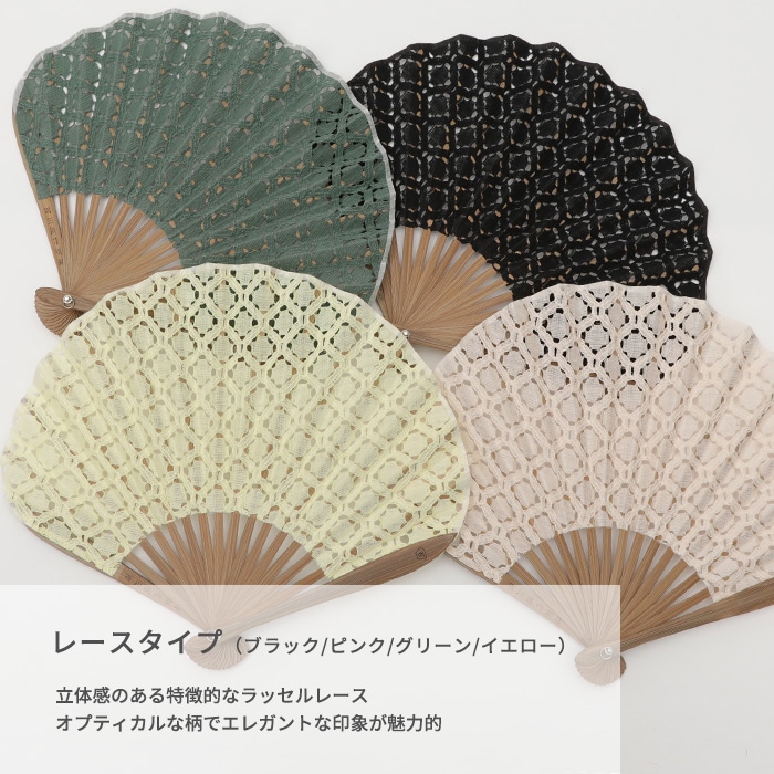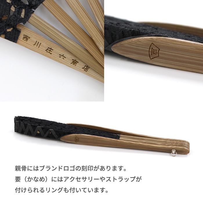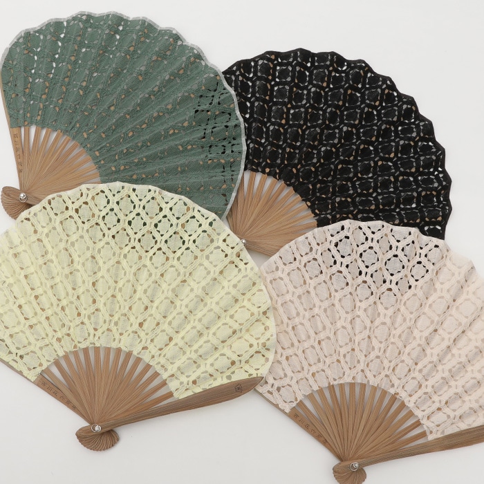 西川庄六商店のレース生地が華やか、ふわり扇子です。 お洋服にもマッチする形と上品で高級感のあるレース生地が普段使いしやすいです。シェル型扇子は広げた時もコンパクトなので、あまり大きく幅を取りたくないシーンにも最適です。 立体感のあるラッセルレース素材のものと、マイクロドットを散りばめたチュール生地。どちらも手に取りやすい全7カラー展開。 携帯にも便利なお揃いの扇子袋付き、高級感ある金箔押しの桐箱付きですので大切な方への贈り物にもぜひおすすめです。 《西川庄六商店》 創業1585年近江八幡にて創業。約400年続く「西川庄六商店」は、今でいうセレクトショップ。 近江商人として、大阪や江戸で日本中の良いモノを取扱いました。現在、扇子を中心に、日本に今も残る良いモノを現代の暮らしに合わせ、新しい商品を提案致します。