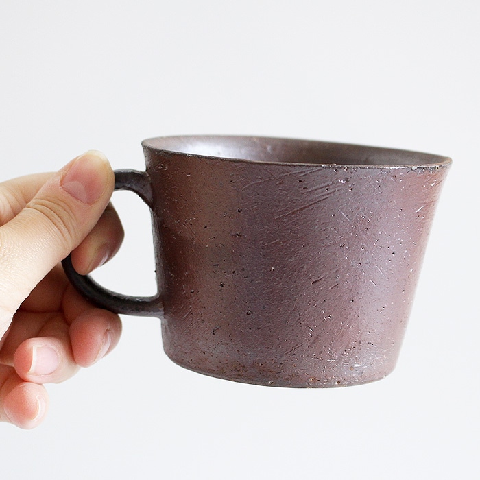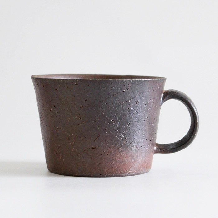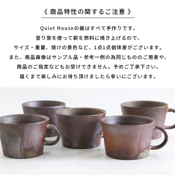 「Quiet House」より「まっすぐスープマグ」です。底が幅広なのでスープカップとしてお使いいただけます。シンプルで使いやすさを追求した形は普遍的でどんなシーン、テイストでも馴染みます。 現代の暮らしに馴染むスタイリッシュな形と、備前焼らしい荒々しい質感が同時に味わえる器です。ぜひ、暮らしの中でご愛用ください。 《備前焼の特性》 備前焼とは釉薬を一切使用せず、1200〜1300度の高温で焼成する焼締め陶です。そのため「投げても割れない」と言われるほど堅く頑丈な作りになっています。また、備前焼の表面には微細な凹凸があり、それによって保温力が強くホット飲料など冷めにくいです。使い始めはこのザラっとした感じが気になるかもしれませんが、使っていくうちに表面が滑らかに育っていきます。