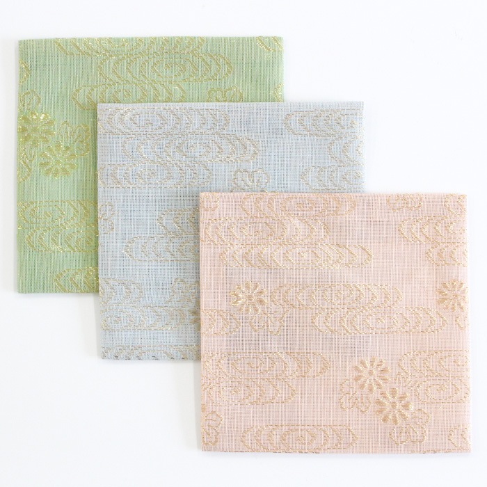 交織の紗 古帛紗です。夏素材で涼し気です。 《古帛紗とは》 裏千家にて使用します。お点前用帛紗の1/4程度の大きさで、茶碗を運ぶ際や道具類の拝見時に使用します。