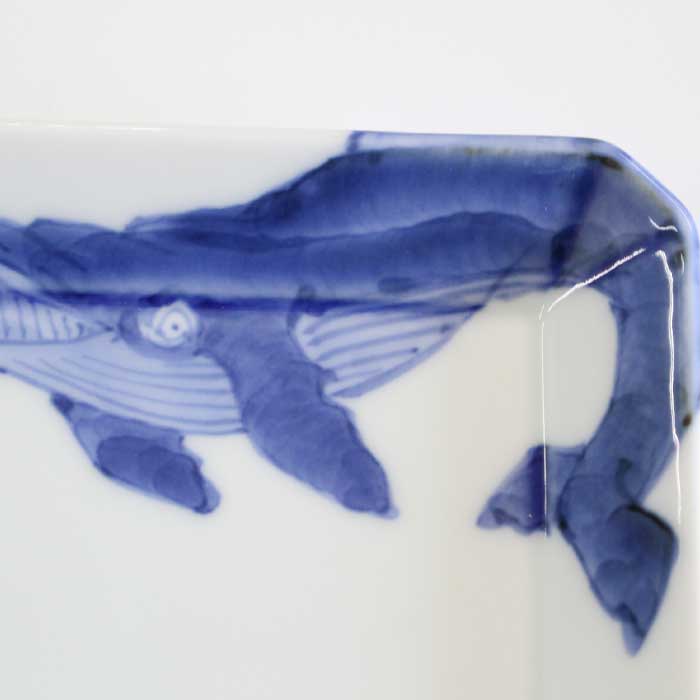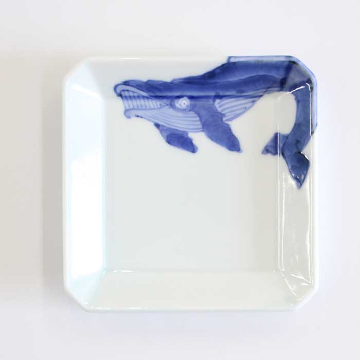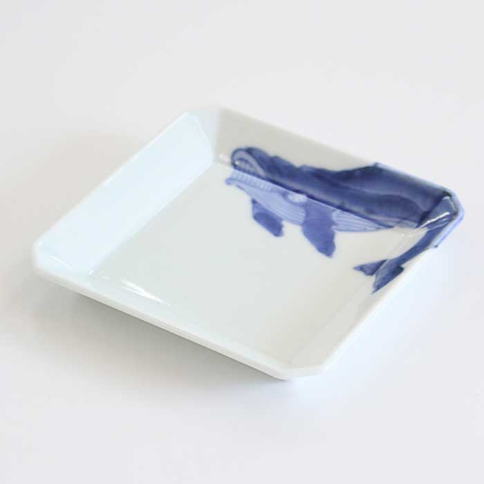 【多種多様な豆皿】 有田焼の渓山窯 くじらの絵付の角皿です。おもてなしや自分のためにつくる休日のブランチに。日々の食事に気兼ねなくお使いいただきたいです。和物、カットフルーツ、スイーツ、などお好きな料理を盛りつけてお楽しみください。取皿やパン皿、スープ碗やカップを乗せた台皿としてもお使いいただけます。 【有田焼 渓山窯】 染付の美しさを求めて渓山窯は創業しました。昭和32年に開窯した渓山窯は名前のとおり、猿川とよばれる清流が美しい渓谷のそばにあります。400年続く伝統産業の地でろくろ職人の祖父・龍一によって創業され、その時代に必要とされる器づくりに励んできました。自分たちの温度や想いを宿し、心を託しながら、この有田で焼きものの灯をつないでいます。渓山窯の器があることで、日々の暮らしが 心地よいものになることを願いながら。 上質な素地をキャンバスにやわらかな呉須で 絵付けした図柄や文様は、古きよき有田焼の柄に、 職人のセンスと現代のエッセンスを採りいれたもの。同じ図柄を描いたものでもひとつひとつ表情が違い、 何とも味わい深いのです。 愛らしさや品のよさを感じるディテールと抜群の実用性、 手しごとのよさを伝える美しい染付の器は ふだんの食事の質をぐっと高めます。 【佐賀県 有田焼】 さかのぼること400年ほどまえ、山々に囲まれたこの町で、 李参平率いる陶工集団が磁器の原料となる 陶石を発見したことからその歴史は始まりました。透きとおるように白い磁肌、呉須で描いた染付、 上絵の具による華やかな赤絵が有田焼の特徴です。