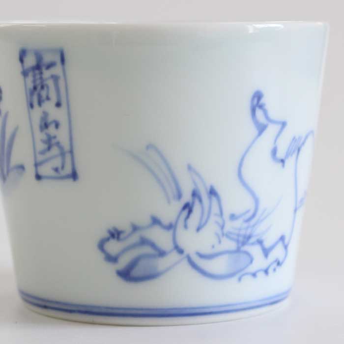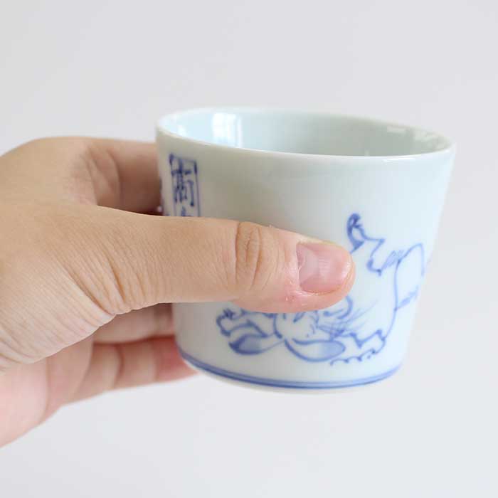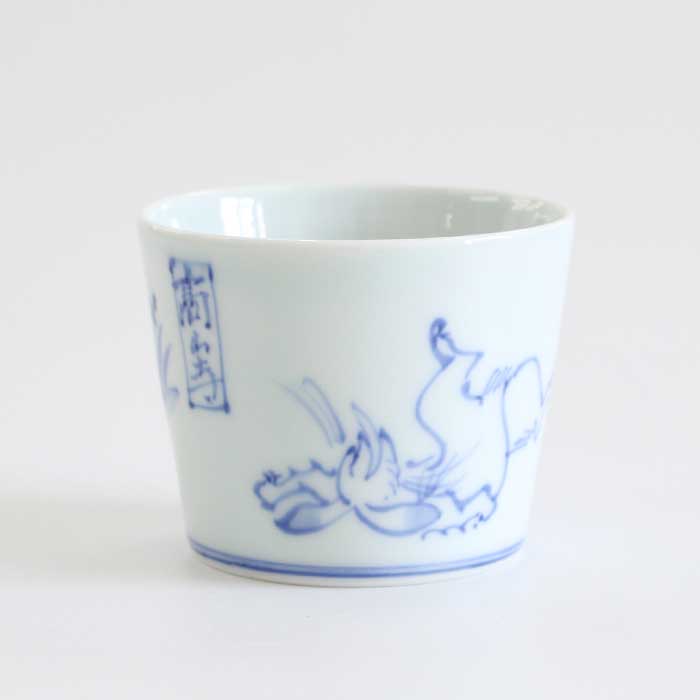 【渓山窯といえばそば猪口】 有田焼の渓山窯 鳥獣戯画の絵付をしたそば猪口です。そばのつけダレとしてはもちろん、小鉢や茶碗蒸し、デザートにも。ソースを入れたり納豆鉢にしたり、お茶、コーヒー、お酒とそば猪口は使い回しが豊富です。 スタッキングもできるので収納もバッチリです。 「渓山窯といえばそば猪口」。そう言われるほど有名になったきっかけは、昭和59年に手がけた「そば猪口100選」の成功から。いまも常時100種類を超えるそば猪口があり、そのバリエーションの多さや使い勝手のよさから、老若男女のお客さまに愛されています。 【有田焼 渓山窯】 染付の美しさを求めて渓山窯は創業しました。昭和32年に開窯した渓山窯は名前のとおり、猿川とよばれる清流が美しい渓谷のそばにあります。400年続く伝統産業の地でろくろ職人の祖父・龍一によって創業され、その時代に必要とされる器づくりに励んできました。自分たちの温度や想いを宿し、心を託しながら、この有田で焼きものの灯をつないでいます。渓山窯の器があることで、日々の暮らしが 心地よいものになることを願いながら。 【佐賀県 有田焼】 さかのぼること400年ほどまえ、山々に囲まれたこの町で、 李参平率いる陶工集団が磁器の原料となる 陶石を発見したことからその歴史は始まりました。透きとおるように白い磁肌、呉須で描いた染付、 上絵の具による華やかな赤絵が有田焼の特徴です。