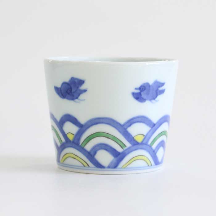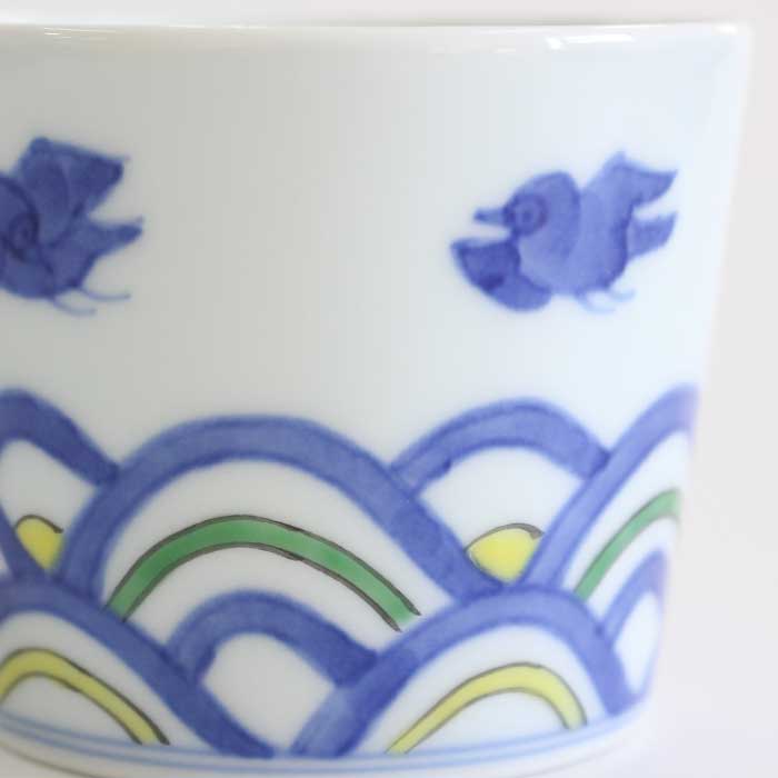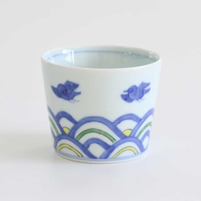 【渓山窯といえばそば猪口】 有田焼の渓山窯 そば猪口です。「波千鳥」は、「共に荒波を乗り越えていく」という意味があり、夫婦円満や家内安全などの縁起の良い柄と言われています。 そばのつけダレとしてはもちろん、小鉢や茶碗蒸し、デザートにも。ソースを入れたり納豆鉢にしたり、お茶、コーヒー、お酒とそば猪口は使い回しが豊富です。 スタッキングもできるので収納もバッチリです。 「渓山窯といえばそば猪口」。そう称されるほど有名になったきっかけは、昭和59年に手がけた「そば猪口100選」の成功から。いまも常時100種類を超えるそば猪口があり、そのバリエーションの多さや使い勝手のよさから、老若男女のお客さまに愛されています。 【有田焼 渓山窯】 染付の美しさを求めて渓山窯は創業しました。昭和32年に開窯した渓山窯は名前のとおり、猿川とよばれる清流が美しい渓谷のそばにあります。400年続く伝統産業の地でろくろ職人の祖父・龍一によって創業され、その時代に必要とされる器づくりに励んできました。自分たちの温度や想いを宿し、心を託しながら、この有田で焼きものの灯をつないでいます。渓山窯の器があることで、日々の暮らしが 心地よいものになることを願いながら。 【佐賀県 有田焼】 さかのぼること400年ほどまえ、山々に囲まれたこの町で、 李参平率いる陶工集団が磁器の原料となる 陶石を発見したことからその歴史は始まりました。透きとおるように白い磁肌、呉須で描いた染付、 上絵の具による華やかな赤絵が有田焼の特徴です。