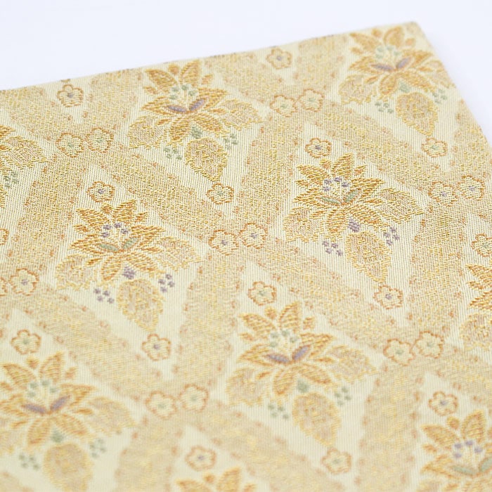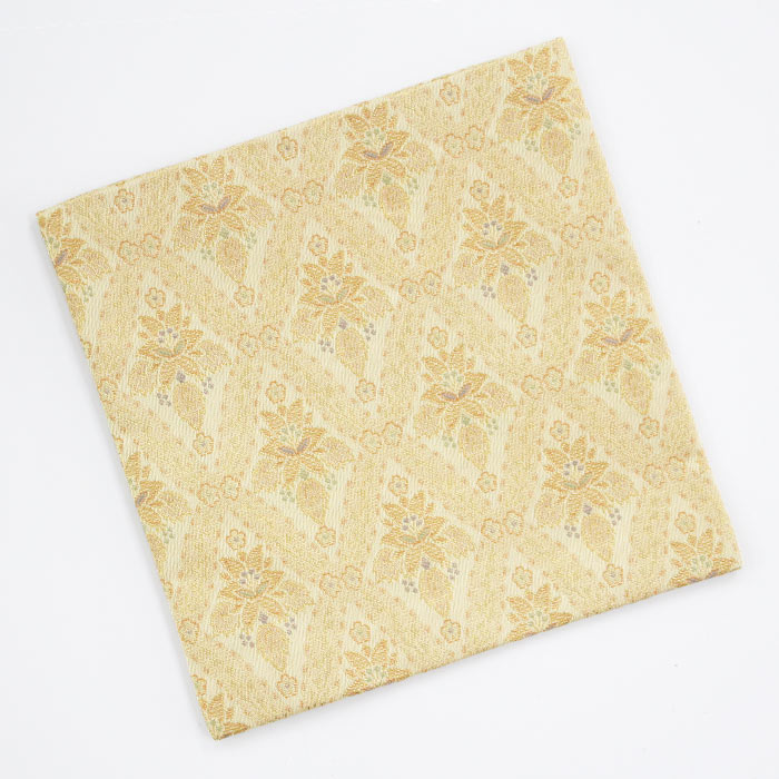 中川政七商店謹製 名物裂 正絹古帛紗です。 《名物裂とは》 名物裂とは、絹織物の呼び名のひとつで、茶の湯において、名物と呼ばれた茶道具を入れる袋や袱紗掛け物の表装、帯地などに用いられた布地の総称のことを指します。 《古帛紗とは》 裏千家にて使用します。お点前用帛紗の1/4程度の大きさで、茶碗を運ぶ際や道具類の拝見時に使用します。