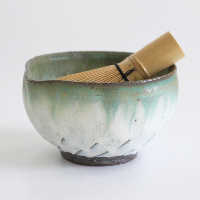 茶道具 抹茶茶碗 美濃焼 均窯 ひわ硝子