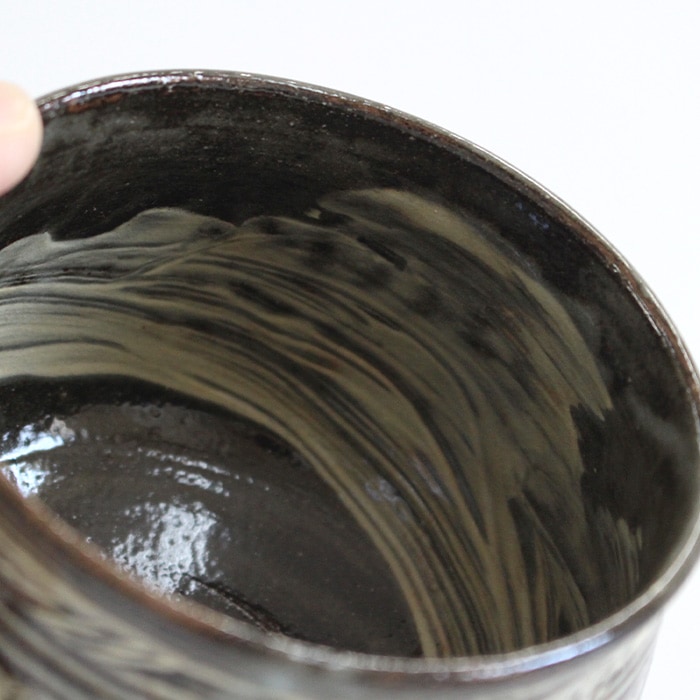 茶道具 抹茶茶碗 美濃焼 黒金刷毛