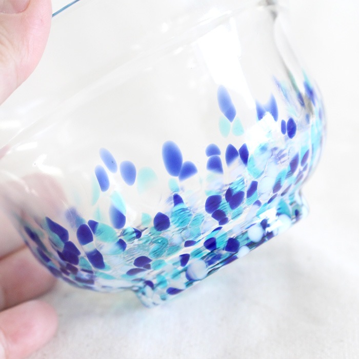 松ヶ岡ガラス工業の「虹のスキャット」シリーズ ガラス抹茶碗です。