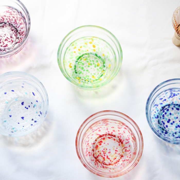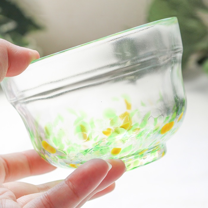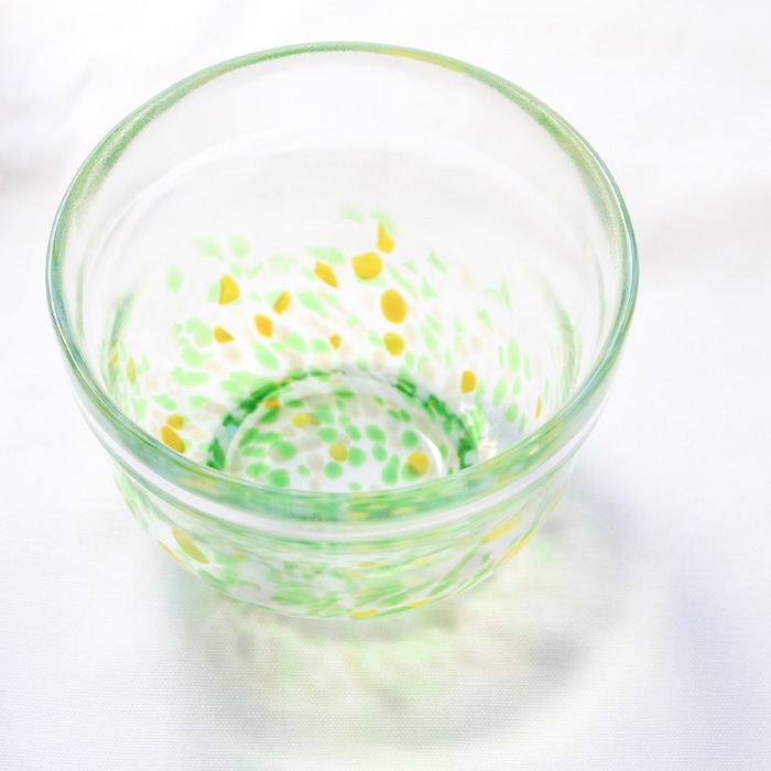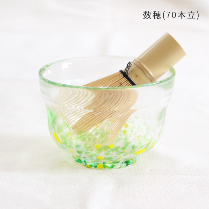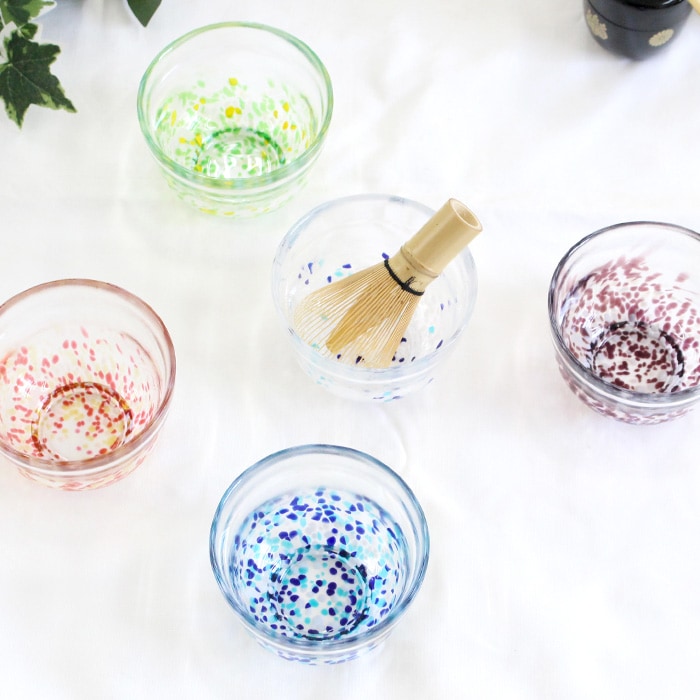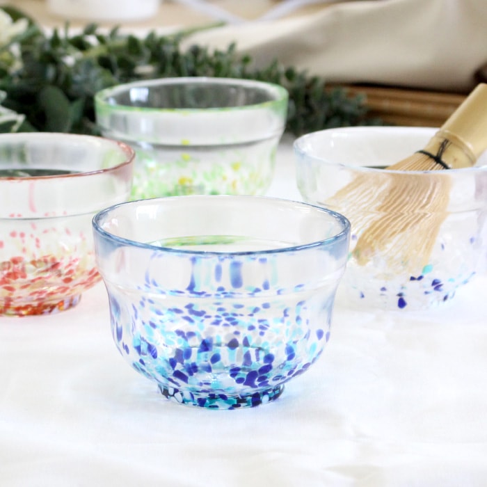 松ヶ岡ガラス工業の「虹のスキャット」シリーズ ガラス抹茶碗です。
