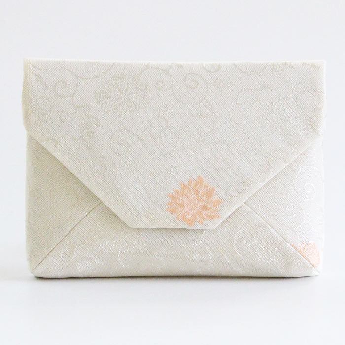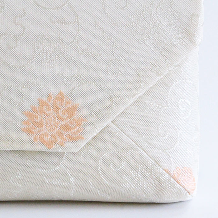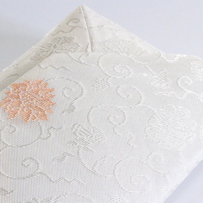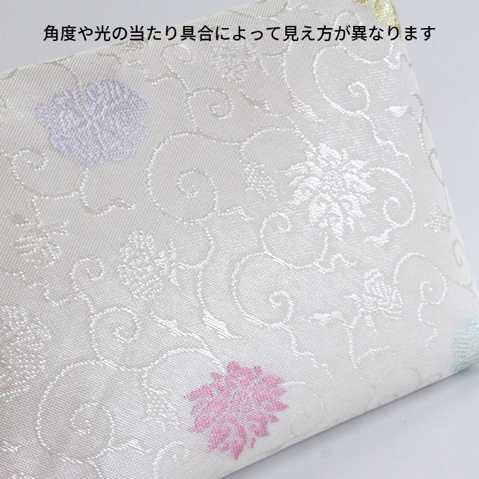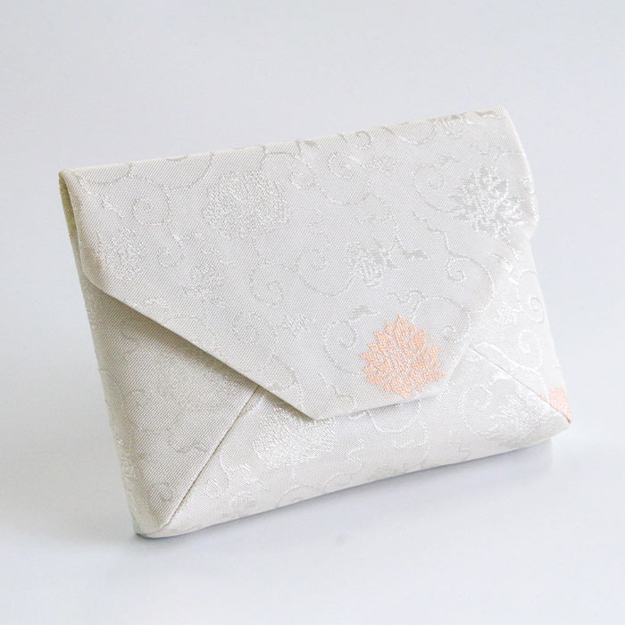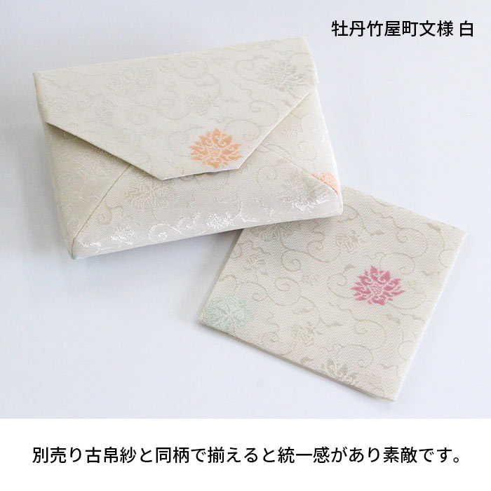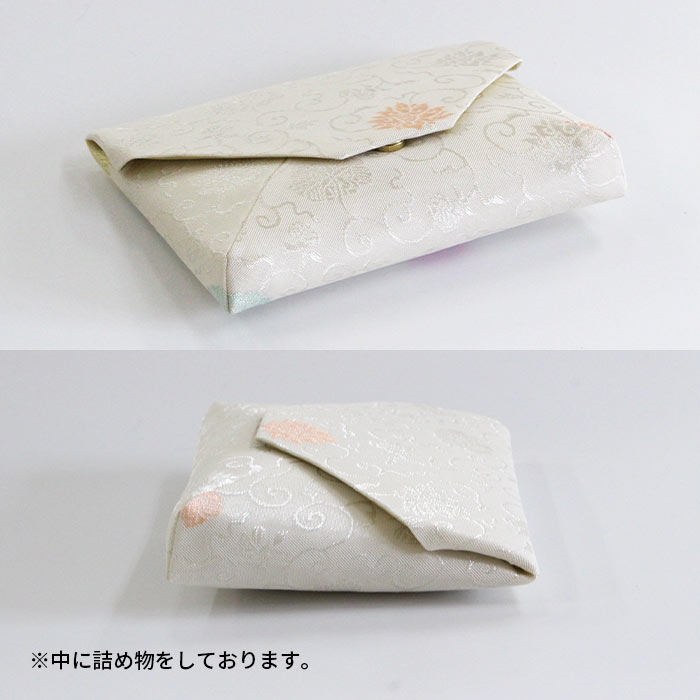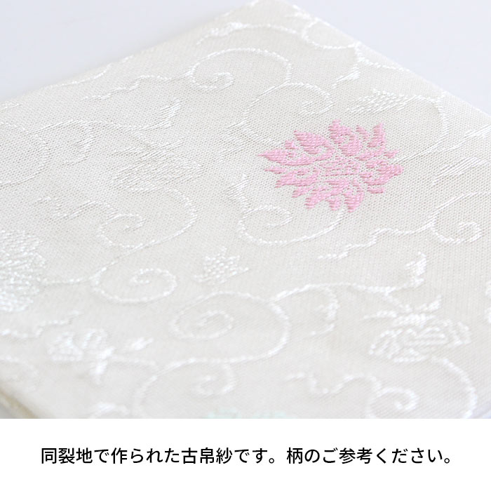 中川政七商店謹製 名物裂 正絹 紗 数寄屋袋です。夏素材で涼し気です。お道具が多くなるお茶会などにご活用ください。 《名物裂とは》 名物裂とは、絹織物の呼び名のひとつで、茶の湯において、名物と呼ばれた茶道具を入れる袋や袱紗掛け物の表装、帯地などに用いられた布地の総称のことを指します。 《裂地の説明 牡丹竹屋町文様》 一重牡丹唐草文様の、竹屋町裂を織り出した文様です。竹屋町の名称は、中国より松屋、銭屋某が織り方を伝授され、京都の竹屋町で織り出した金紗、金絽の総称です。文様は、牡丹唐草の花部分に色糸を用い華やかさを表現した意匠で、涼し気な紗組織に豪華な趣を感じさせてくれる裂です。