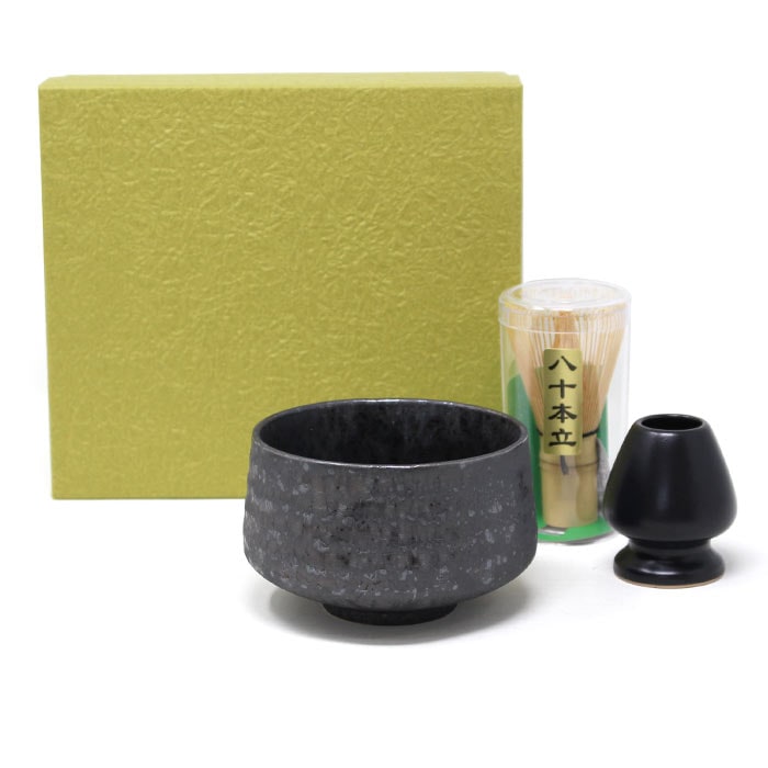 抹茶碗・茶筅・くせ直しの茶道具3点スターターキットです。専用の化粧箱に入っているので、贈り物としても最適。茶道の世界を気軽に楽しめるこのセットで茶道デビューしてみてはいかがでしょうか。※抹茶は付属しておりません。ご入用の方は別途ご購入ください。